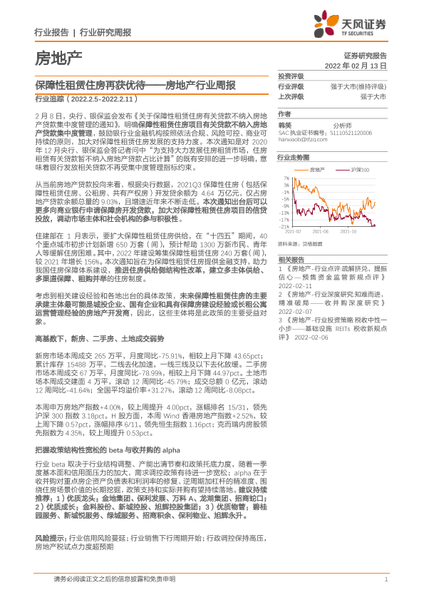 【天风证券】【20220213】房地产行业周报:保障性租赁住房再获优待-20页