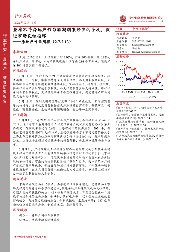 【东亚前海证券】【20220214】坚持不将房地产作为短期刺激经济的手段,促进市场良性循环-11页
