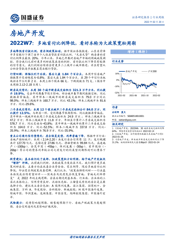 【国盛证券】【20220220】房地产开发2022W7:多地首付比例降低,看好本轮为大政策宽松周期-13页