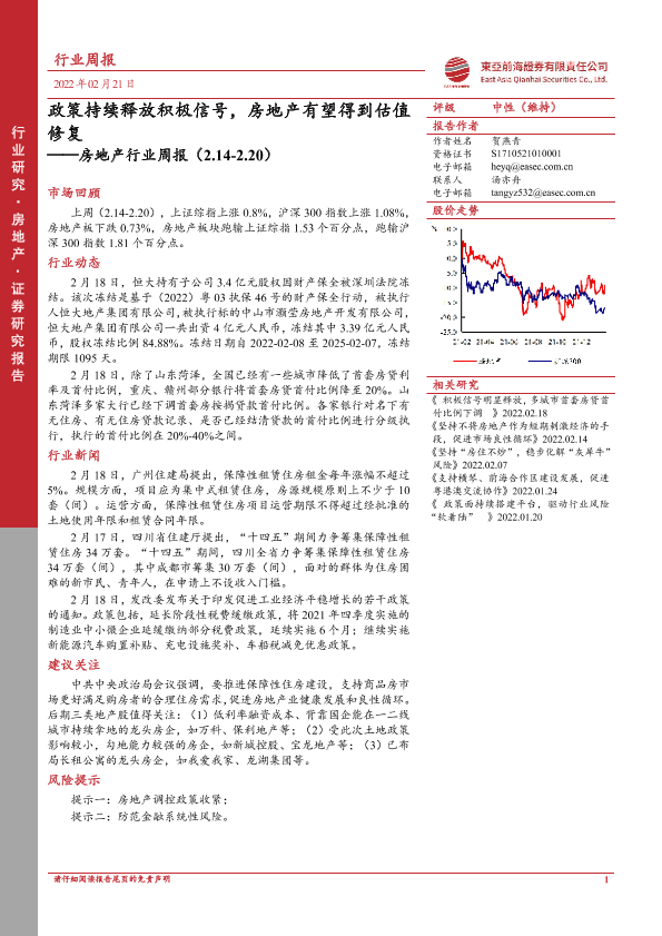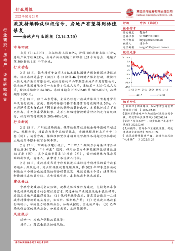 【东亚前海证券】【20220221】政策持续释放积极信号,房地产有望得到估值修复-11页