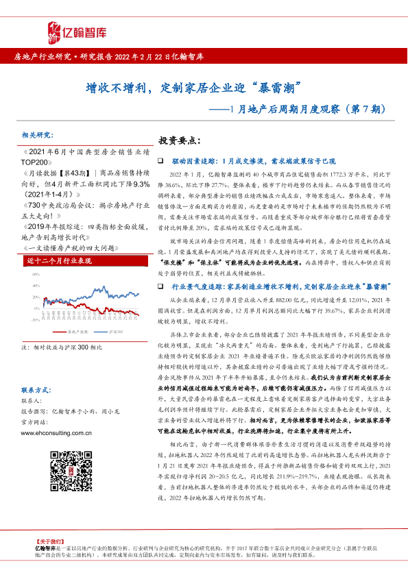 【亿翰智库】【20220222】1月地产后周期月度观察:增收不增利,定制家居企业迎“暴雷潮”-10页