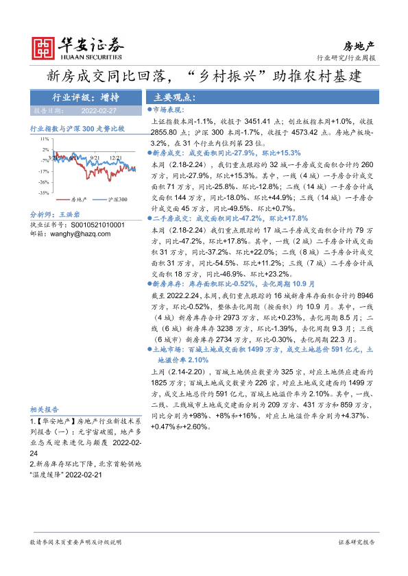 【华安证券】【20220227】房地产行业周报:新房成交同比回落,“乡村振兴”助推农村基建-18页