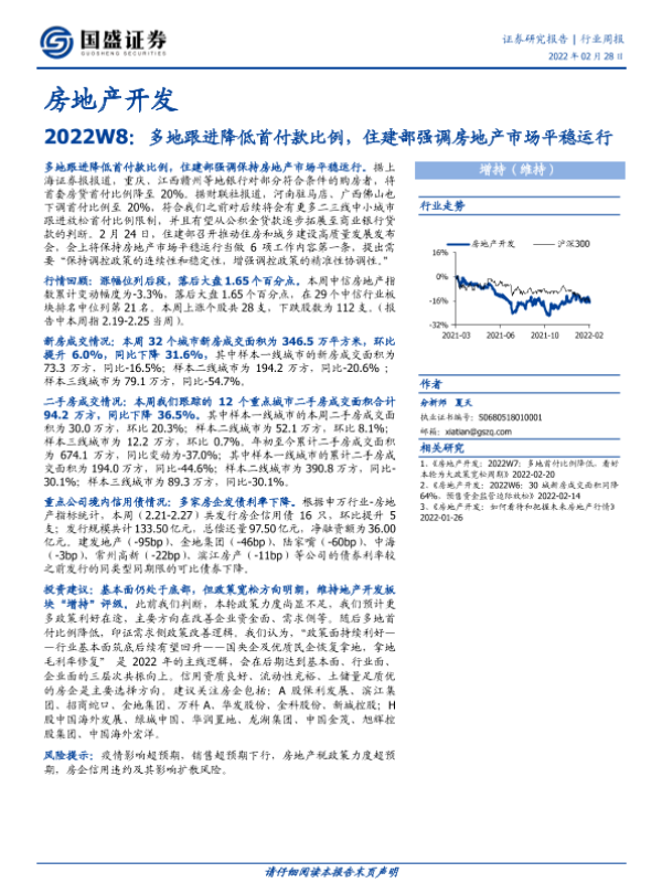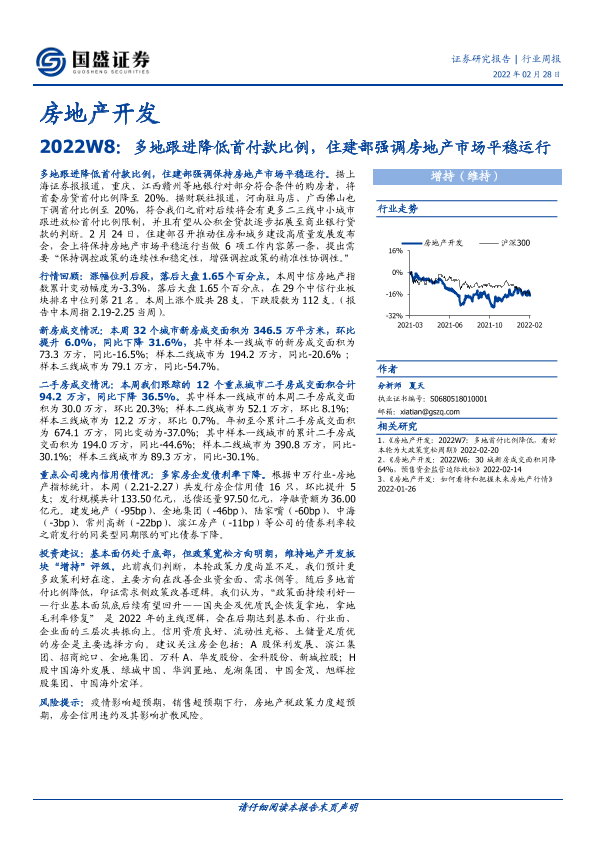【国盛证券】【20220228】2022W8:多地跟进降低首付款比例,住建部强调房地产市场平稳运行-16页