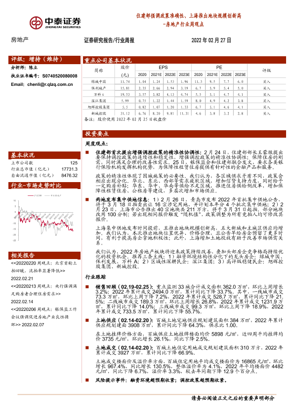 【中泰证券】【20220227】住建部强调政策准确性、上海推出地块规模创新高-11页