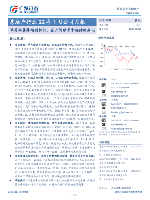 【广发证券】【20220228】22年1月公司月报:单月销售降幅创新低,企业间融资拿地持续分化-33页