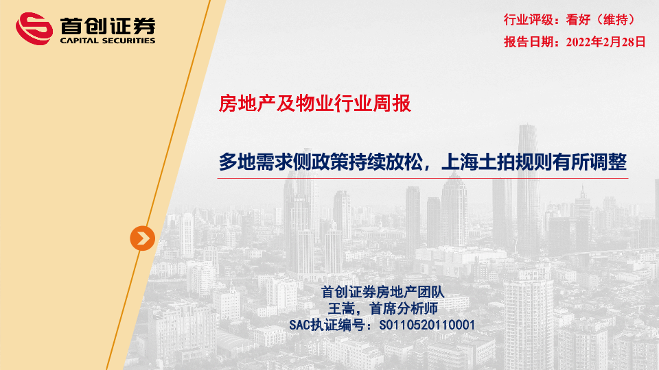 【首创证券】【20220228】房地产及物业行业周报:多地需求侧政策持续放松,上海土拍规则有所调整-23页