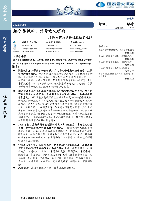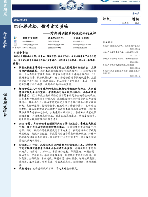 【国泰君安证券】【20220301】对郑州调控系统性放松的点评:组合拳放松,信号意义明确-3页