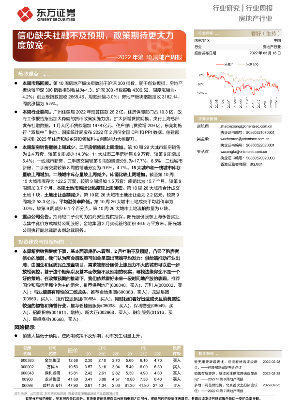 【东方证券】【20220316】2022年第10周地产周报:信心缺失社融不及预期,政策期待更大力度放宽-16页