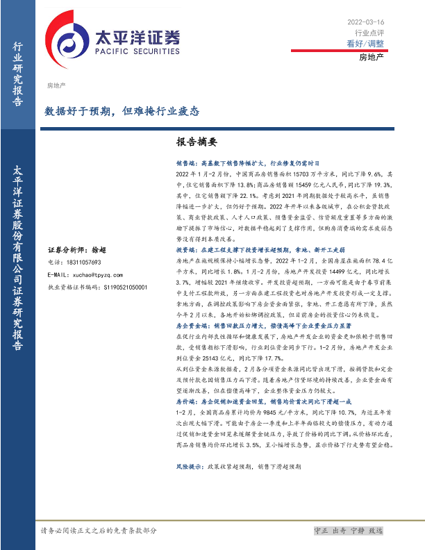 【太平洋证券】【20220316】房地产:数据好于预期,但难掩行业疲态-8页