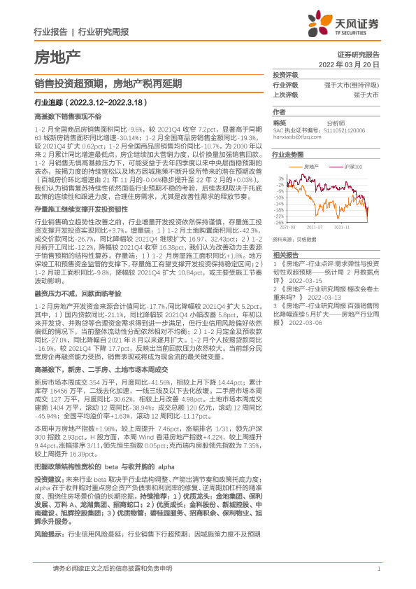 【天风证券】【20220320】销售投资超预期,房地产税再延期-19页