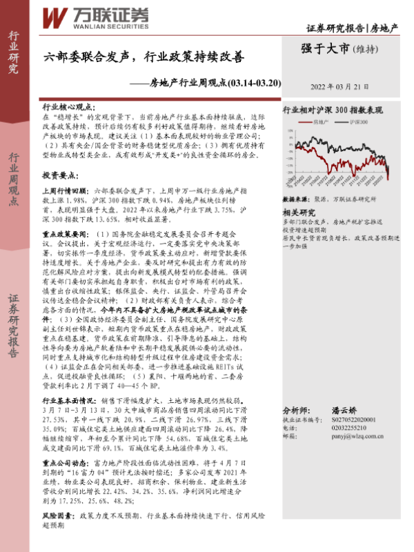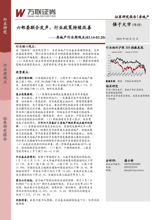 【万联证券】【20220321】六部委联合发声,行业政策持续改善-13页