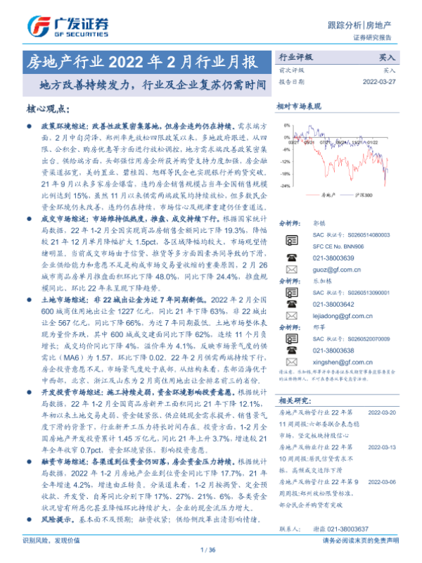 【广发证券】【20220327】房地产行业2022年2月行业月报:地方改善持续发力,行业及企业复苏仍需时间-36页