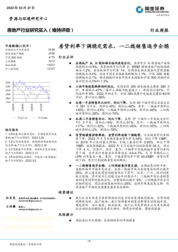 【国金证券】【20220327】房贷利率下调稳定需求,一二线销售逐步企稳-18页