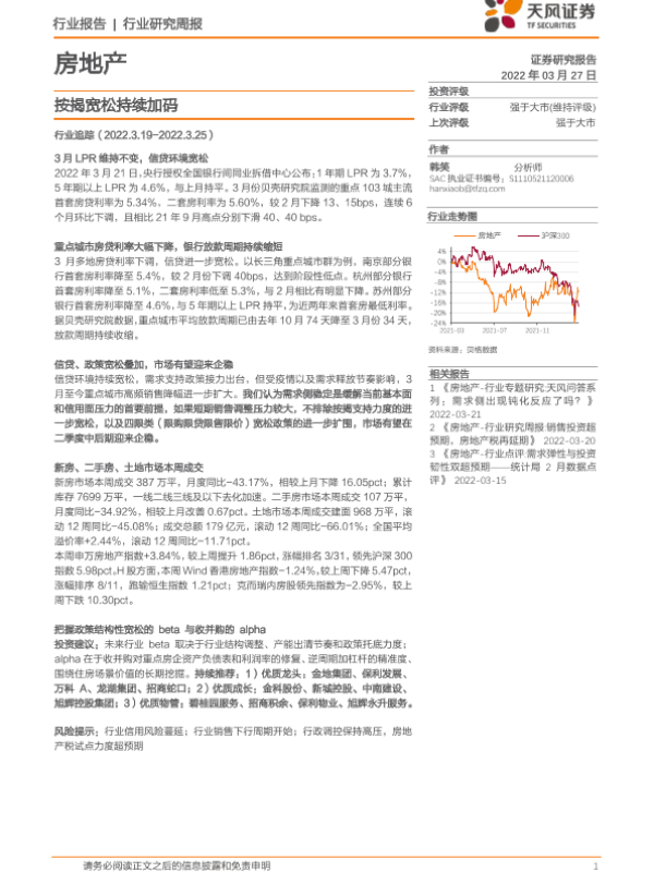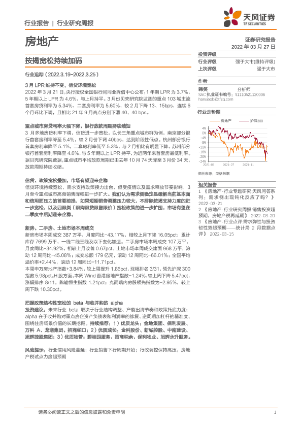 【天风证券】【20220327】房地产行业研究周报:按揭宽松持续加码-17页