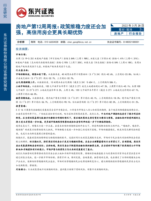 【东兴证券】【20220328】房地产第12周周报:政策维稳力度还会加强,高信用房企更具长期优势-29页