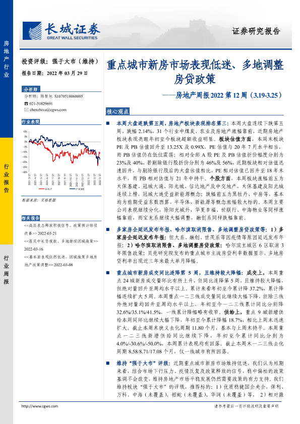 【长城证券】【20220329】重点城市新房市场表现低迷、多地调整房贷政策-19页