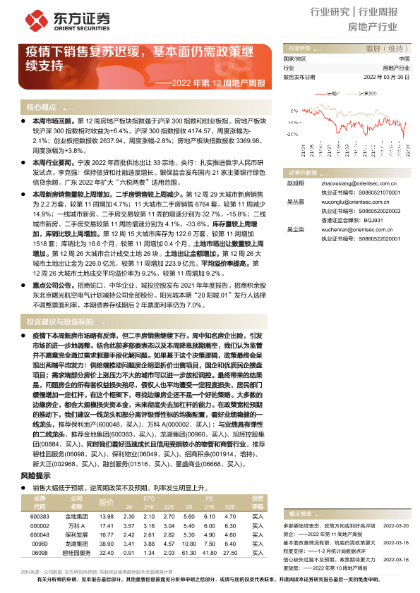【东方证券】【20220330】2022年第12周地产周报:疫情下销售复苏迟缓,基本面仍需政策继续支持-16页