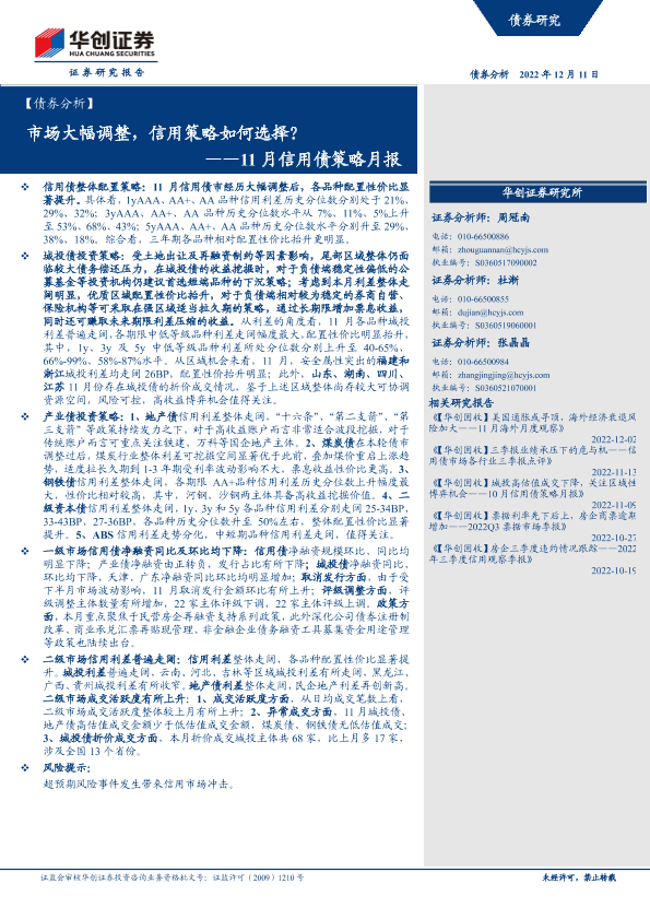 【华创证券】【20221211】11月信用债策略月报:市场大幅调整,信用策略如何选择?-28页
