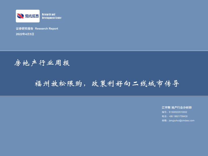【信达证券】【20220405】房地产行业周报:福州放松限购,政策利好向二线城市传导-22页