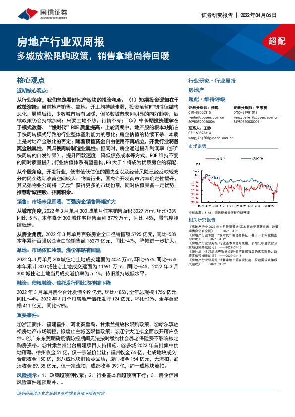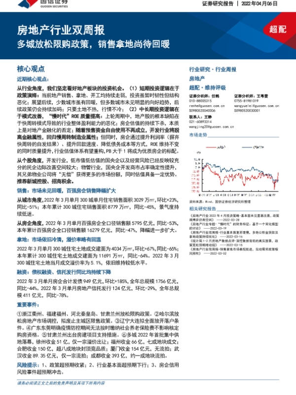 【国信证券】【20220406】房地产行业双周报:多城放松限购政策,销售拿地尚待回暖-12页