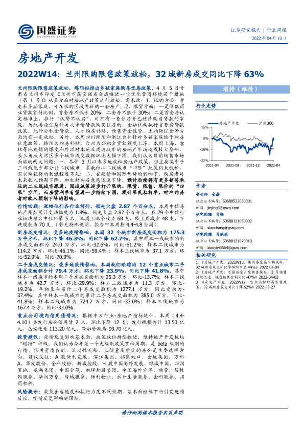 【国盛证券】【20220410】2022W14:兰州限购限售政策放松,32城新房成交同比下降63%-15页