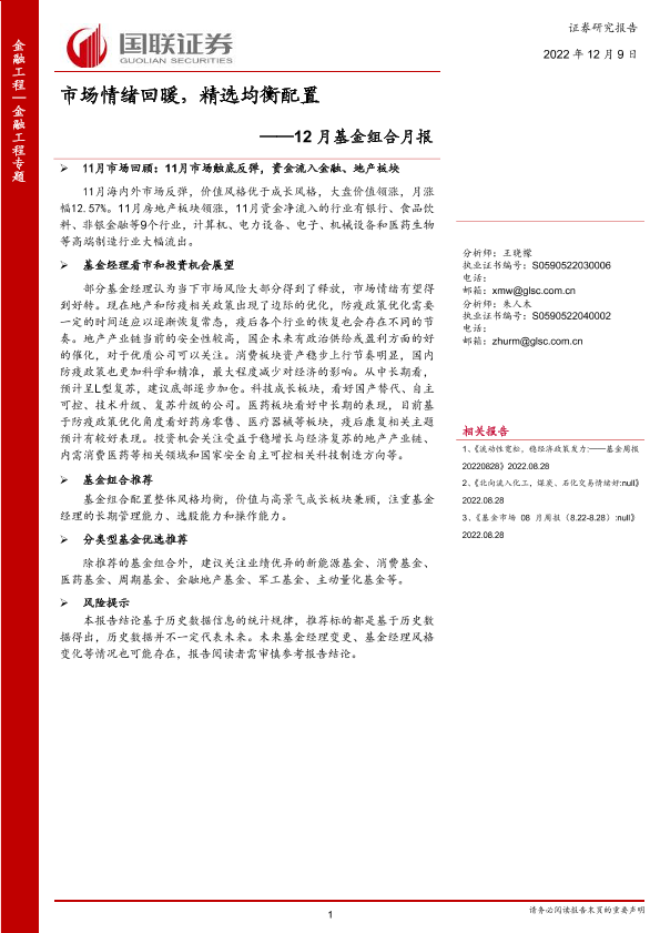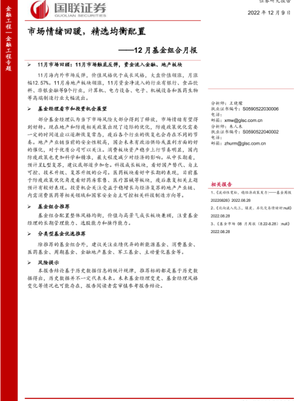 【国联证券】【20221209】12月基金组合月报:市场情绪回暖,精选均衡配置-21页