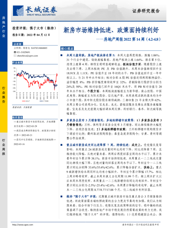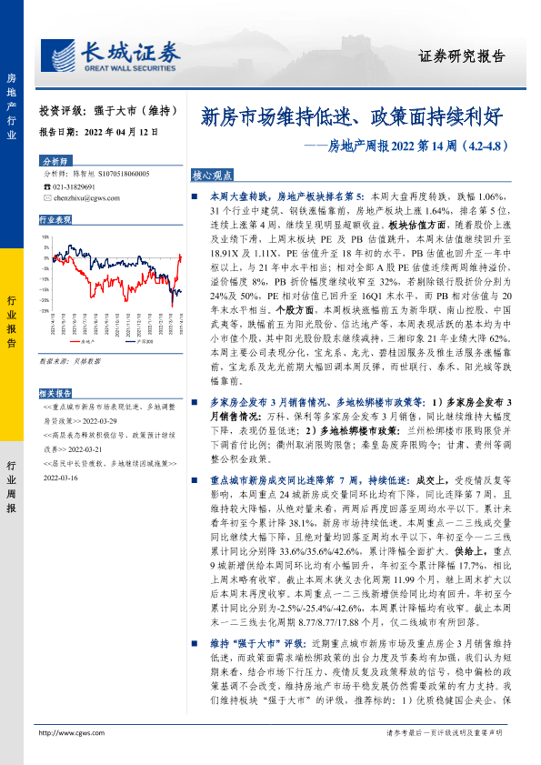 【长城证券】【20220412】房地产周报2022第14周:新房市场维持低迷、政策面持续利好-17页