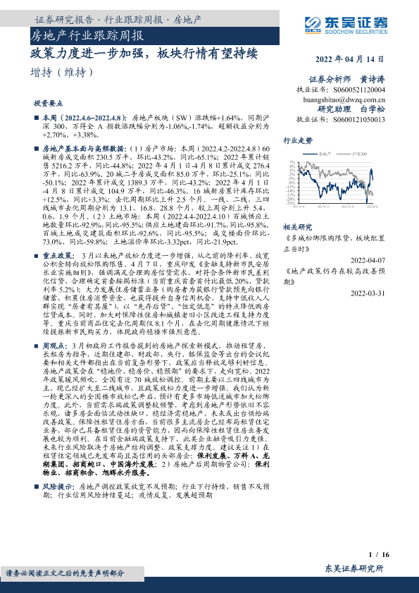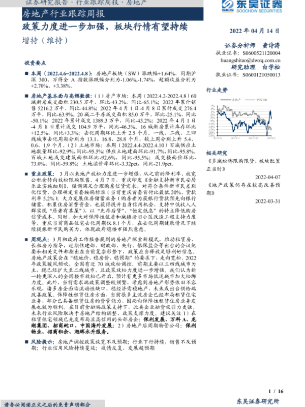 【东吴证券】【20220414】房地产行业跟踪周报:政策力度进一步加强,板块行情有望持续-16页