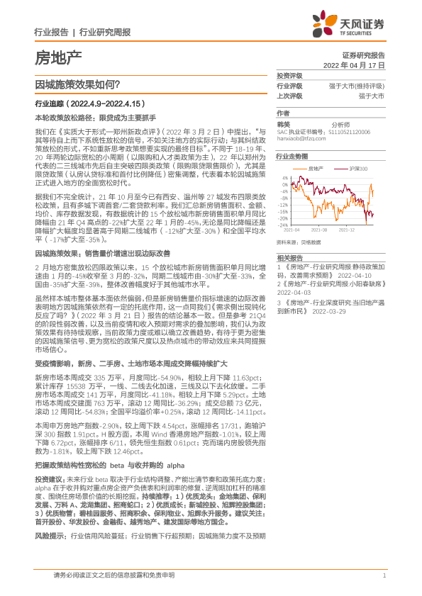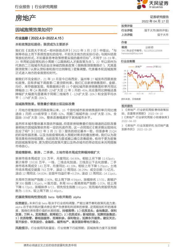 【天风证券】【20220417】房地产行业研究周报:因城施策效果如何?-22页