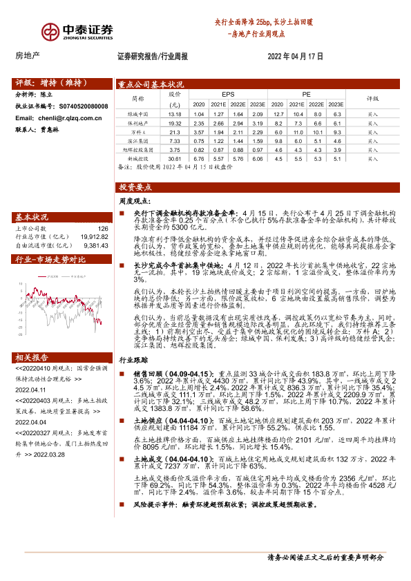 【中泰证券】【20220417】央行全面降准25bp,长沙土拍回暖-11页