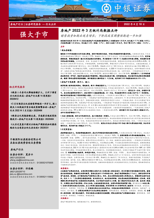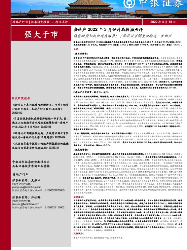 【中银证券】【20220418】房地产2022年3月统计局数据点评:销售投资如期出现负增长;下阶段政策调整预期进一步加强-6页