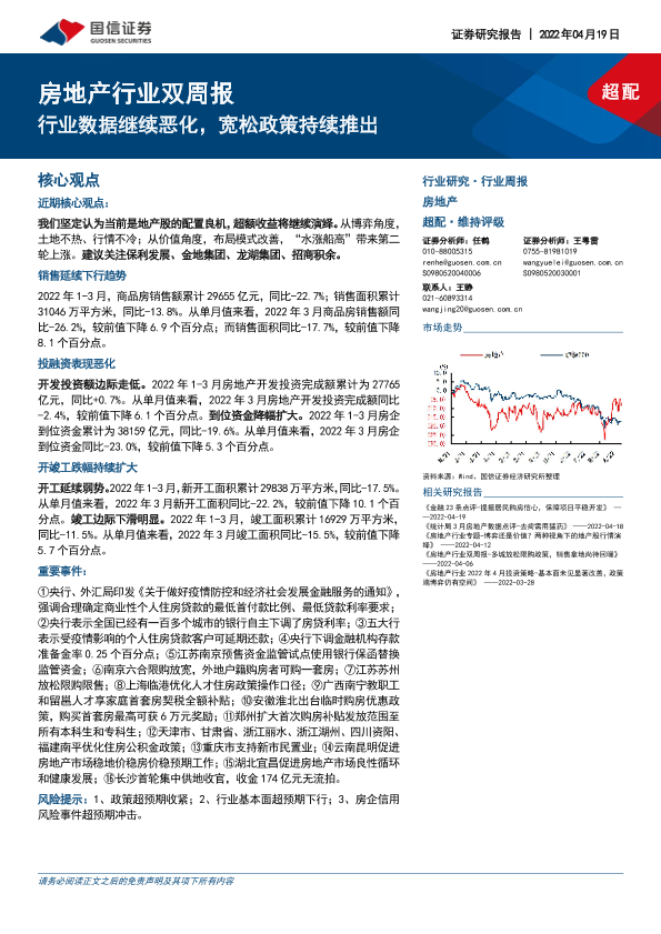 【国信证券】【20220419】房地产行业双周报:行业数据继续恶化,宽松政策持续推出-14页