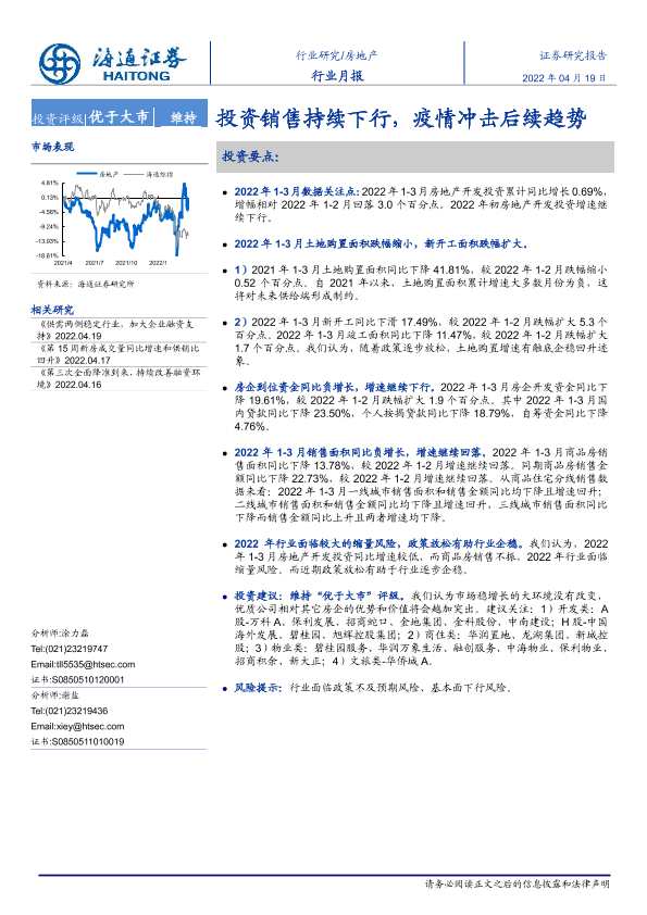 【海通证券】【20220419】房地产行业月报:投资销售持续下行,疫情冲击后续趋势-11页
