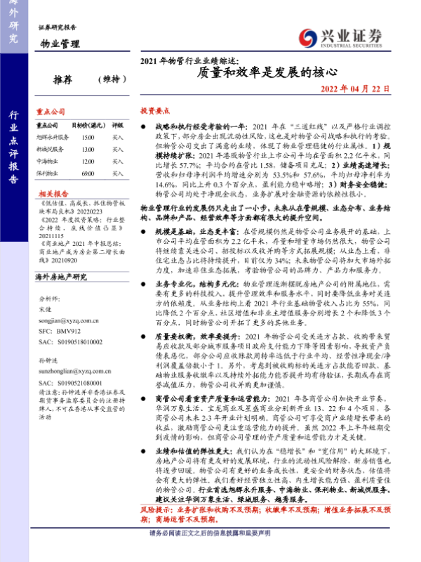 【兴业证券】【20220422】2021年物管行业业绩综述:质量和效率是发展的核心-16页