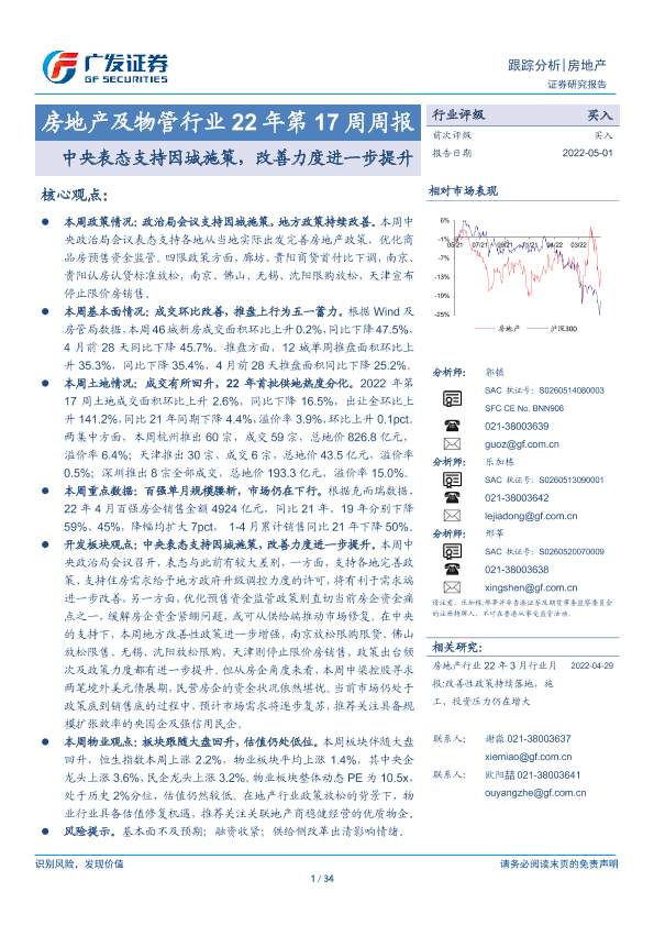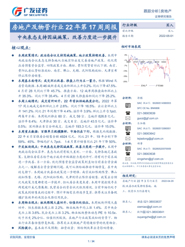 【广发证券】【20220501】房地产及物管行业22年第17周周报:中央表态支持因城施策,改善力度进一步提升-34页