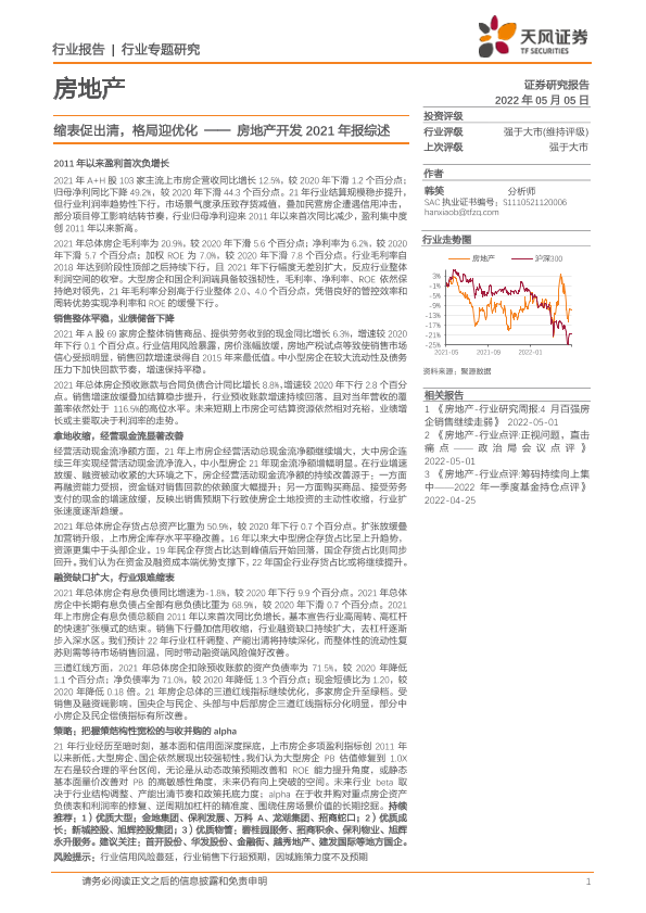 【天风证券】【20220505】房地产开发2021年报综述:缩表促出清,格局迎优化-21页