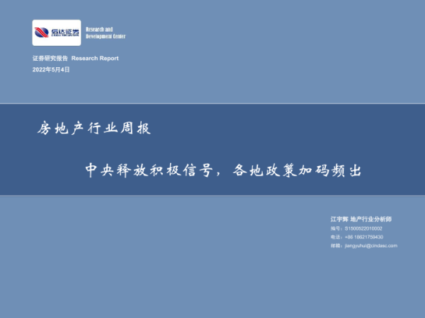 【信达证券】【20220504】房地产行业周报:中央释放积极信号,各地政策加码频出-24页