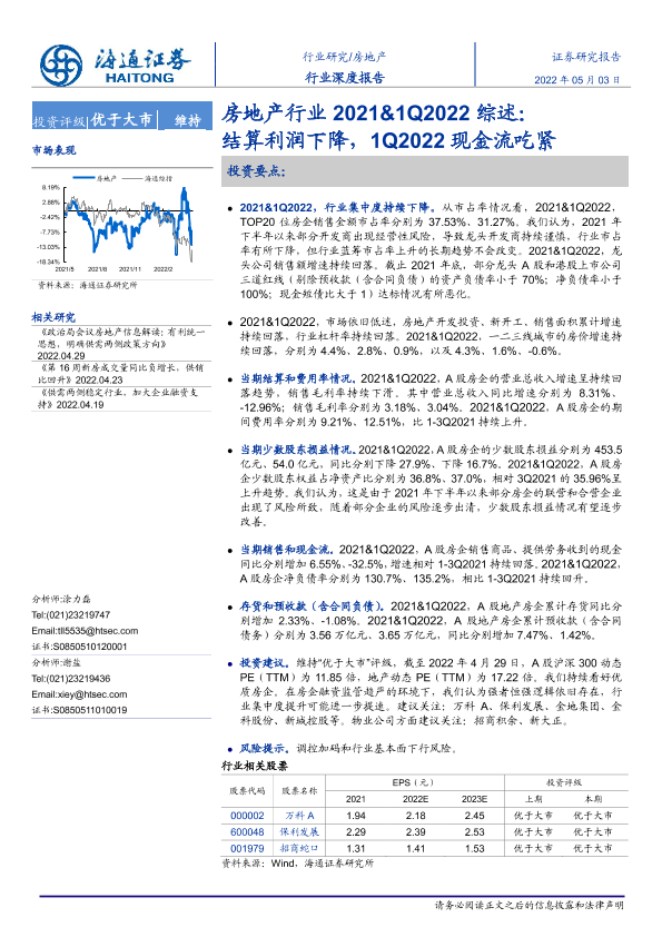 【海通证券】【20220503】房地产行业2021&1Q2022综述:结算利润下降,1Q2022现金流吃紧-27页