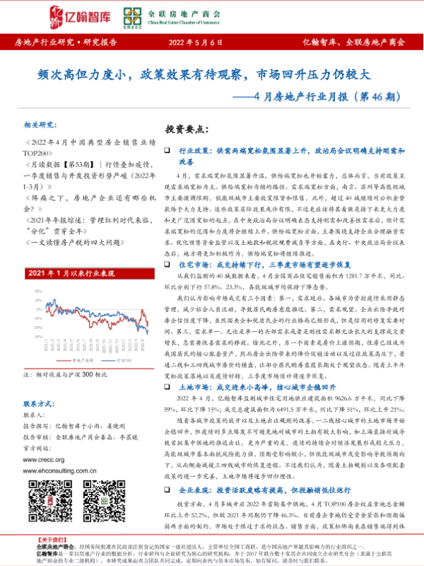 【亿翰智库】【20220506】4月房地产行业月报:频次高但力度小,政策效果有待观察,市场回升压力仍较大-34页