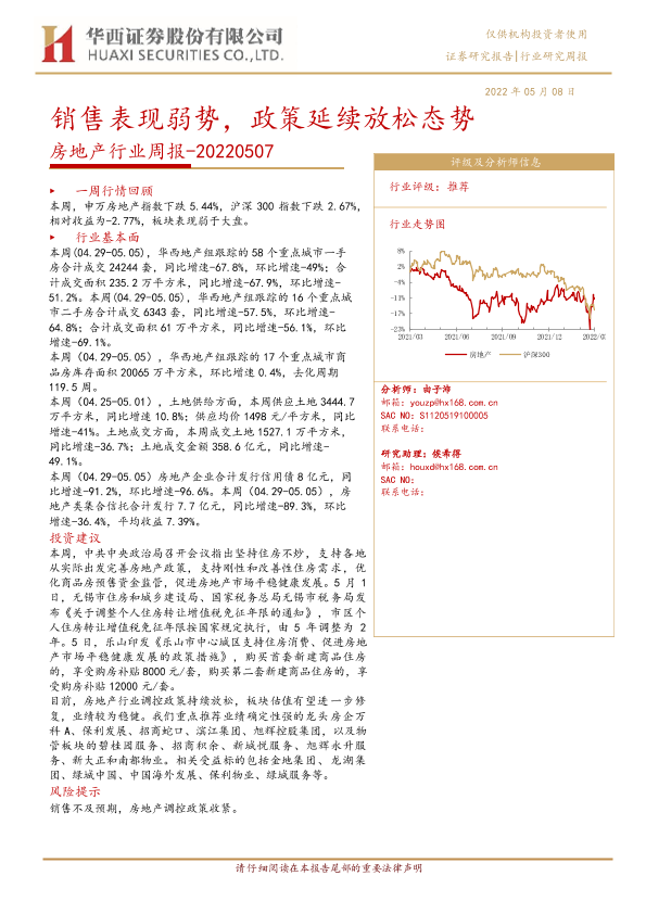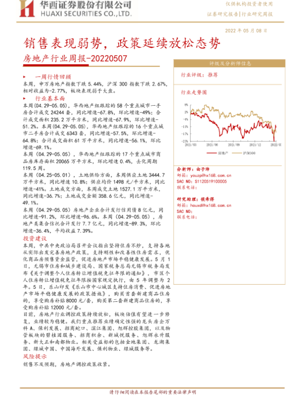 【华西证券】【20220508】房地产行业周报:销售表现弱势,政策延续放松态势-26页