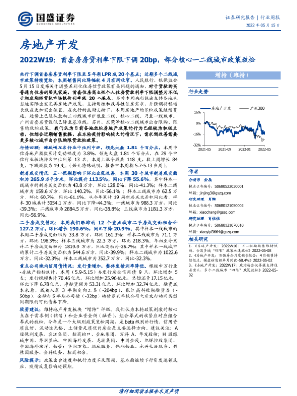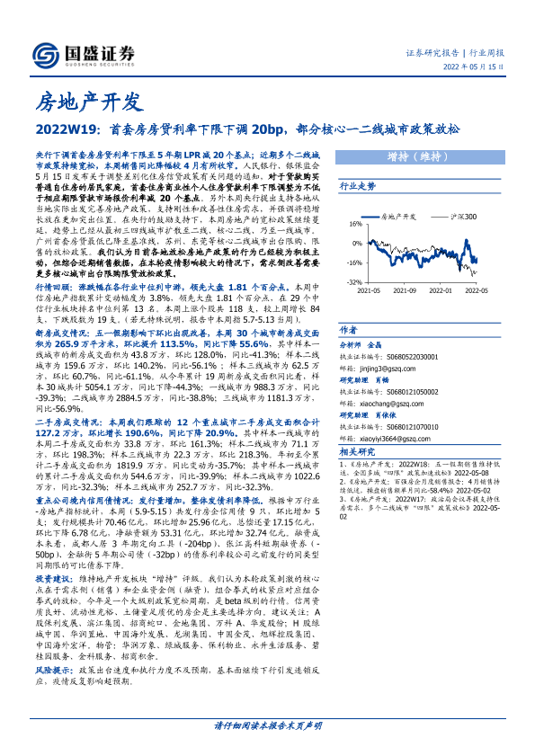 【国盛证券】【20220515】房地产开发2022W19:首套房房贷利率下限下调20bp,部分核心一二线城市政策放松-14页