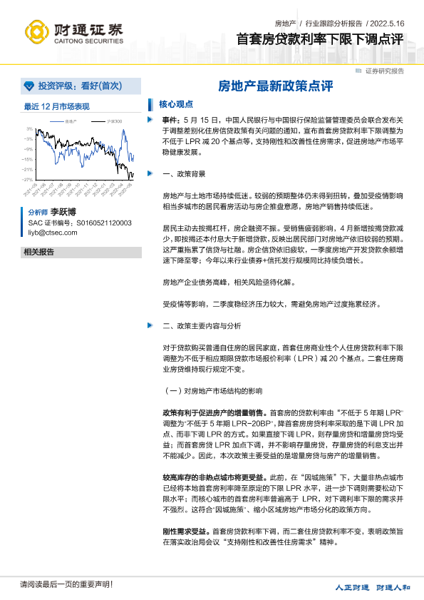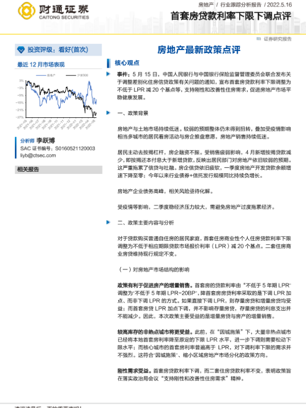 【财通证券】【20220516】房地产最新政策点评:首套房贷款利率下限下调-3页