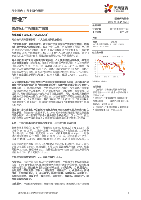 【天风证券】【20220515】透过银行年报看地产信贷-20页