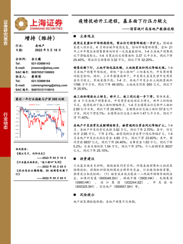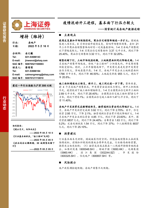 【上海证券】【20220516】国家统计局房地产数据追踪:疫情扰动开工进程,基本面下行压力较大-8页