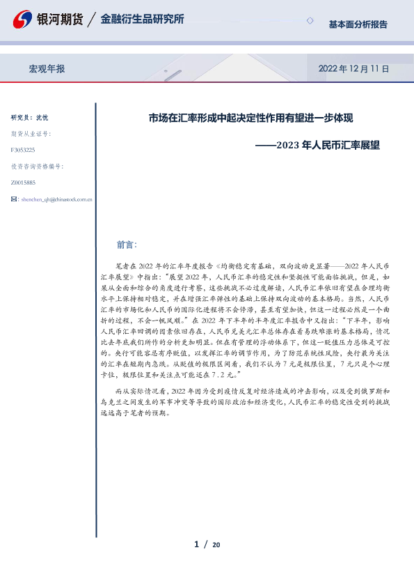 【银河期货】【20221211】2023年人民币汇率展望:市场在汇率形成中起决定性作用有望进一步体现-20页