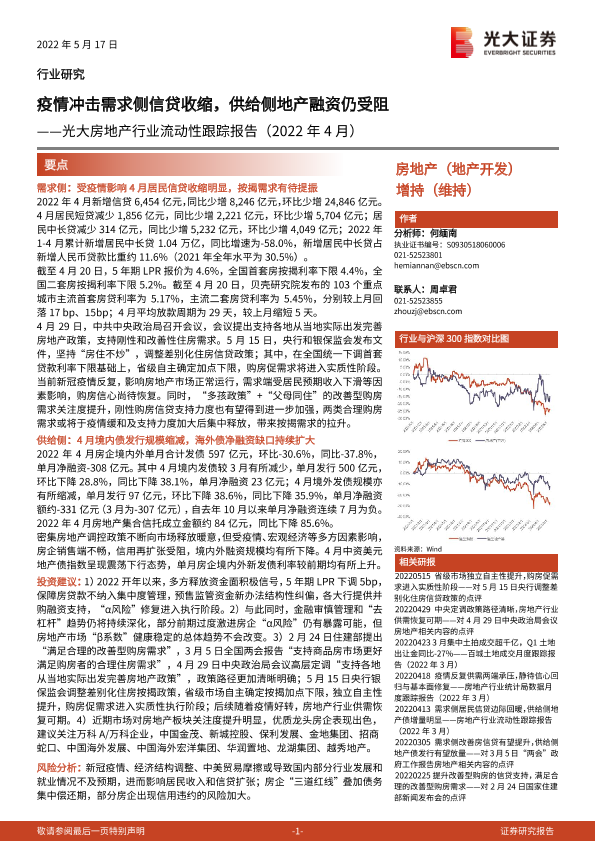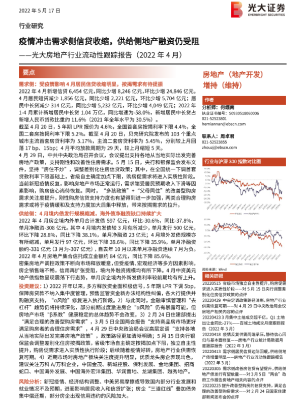 【光大证券】【20220517】光大房地产行业流动性跟踪报告-13页