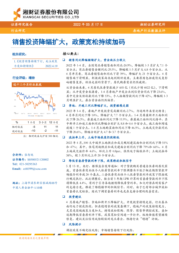 【湘财证券】【20220517】销售投资降幅扩大,政策宽松持续加码-12页