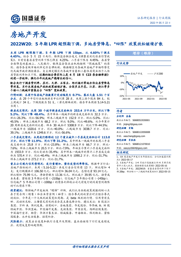 【国盛证券】【20220522】房地产开发2022W20:5年期LPR超预期下调,多地房贷降息,“四限”政策放松继续扩散-14页