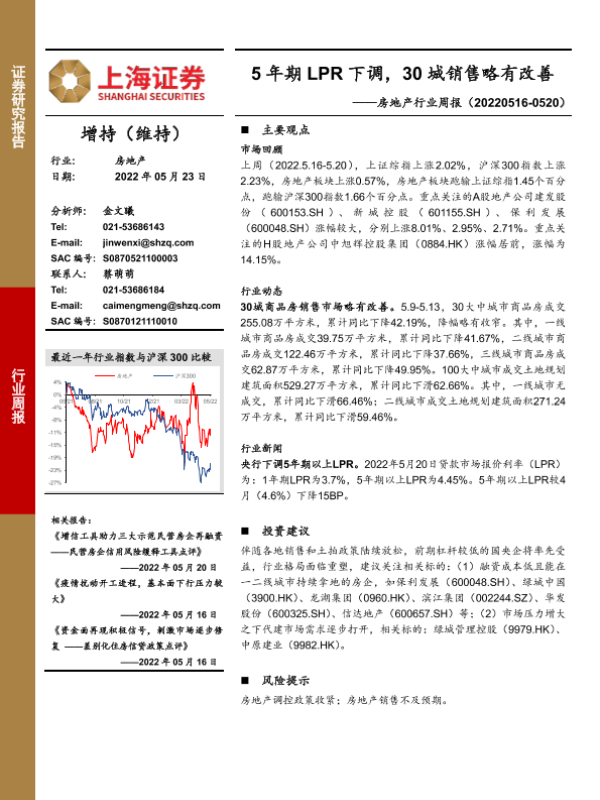 【上海证券】【20220523】5年期LPR下调,30城销售略有改善-13页