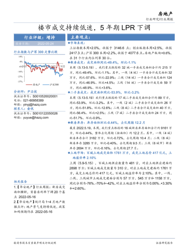 【华安证券】【20220524】楼市成交持续低迷,5年期LPR下调-20页